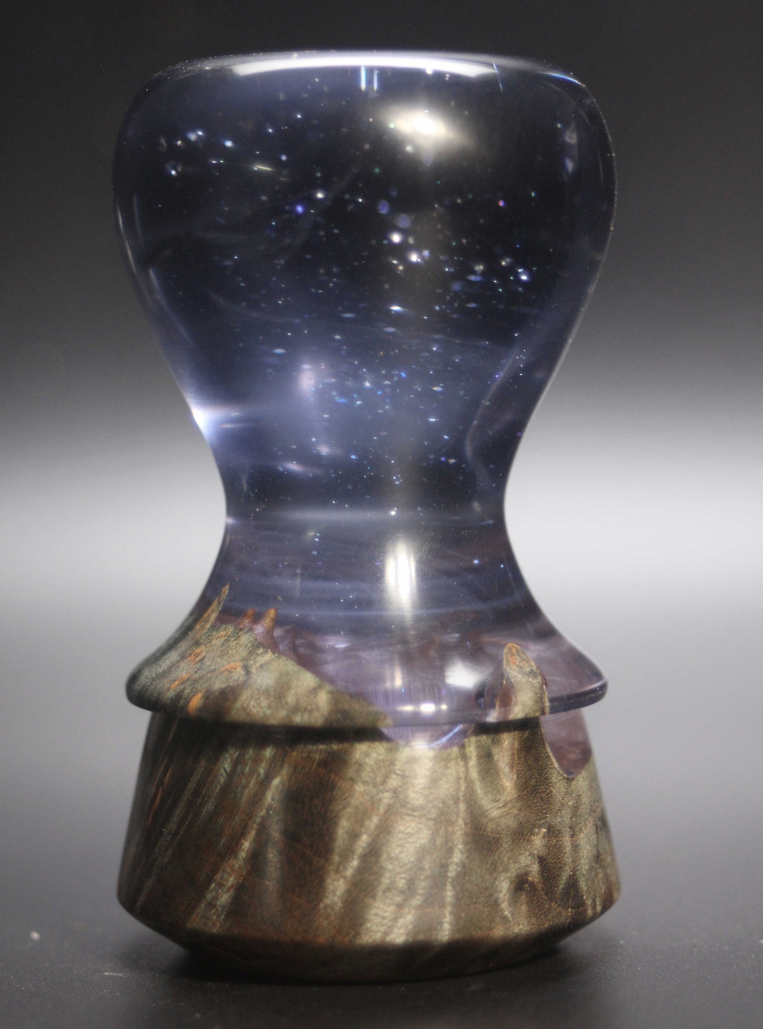 This brush is a wood and resin hybrid shaving brush handle