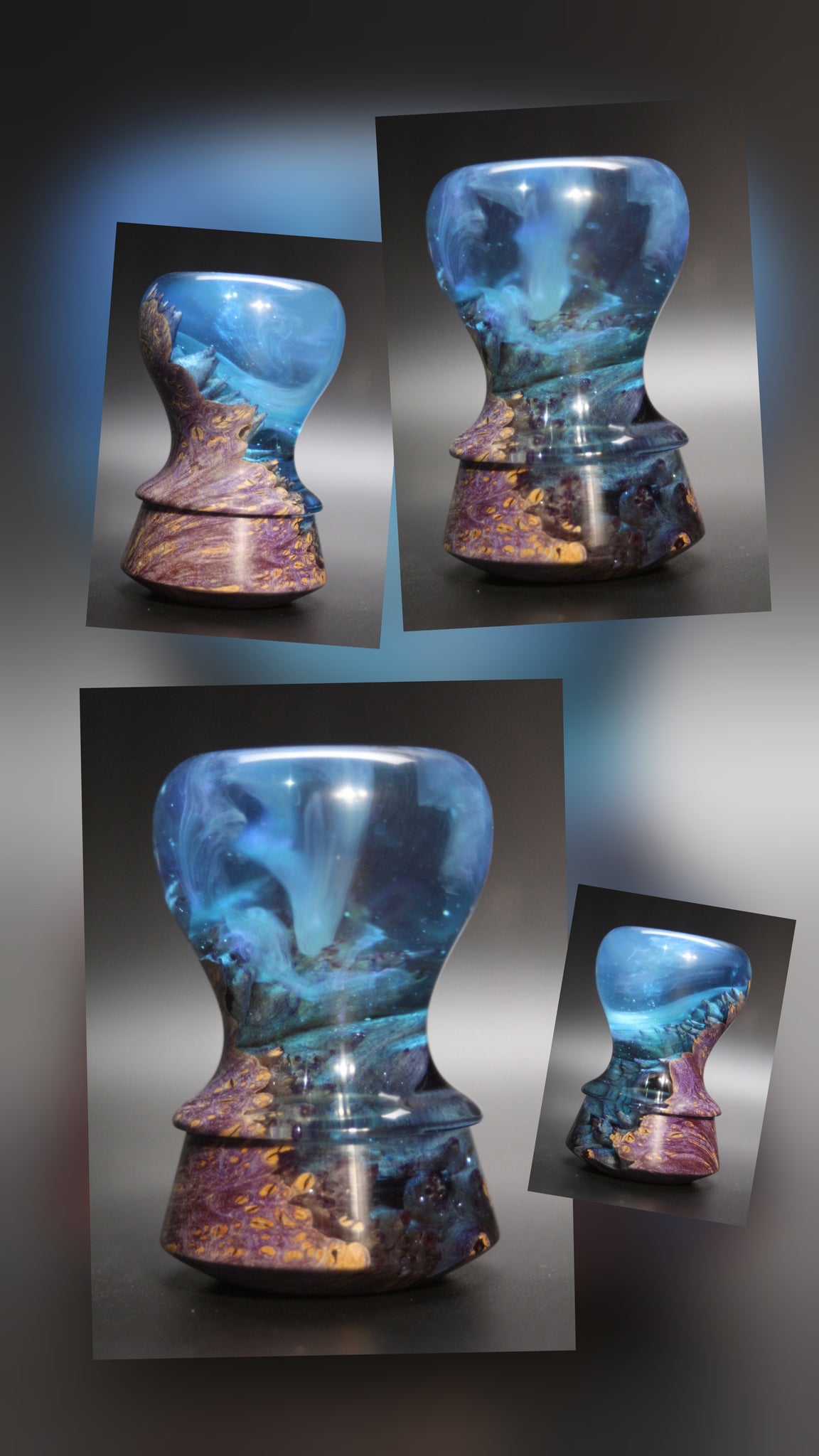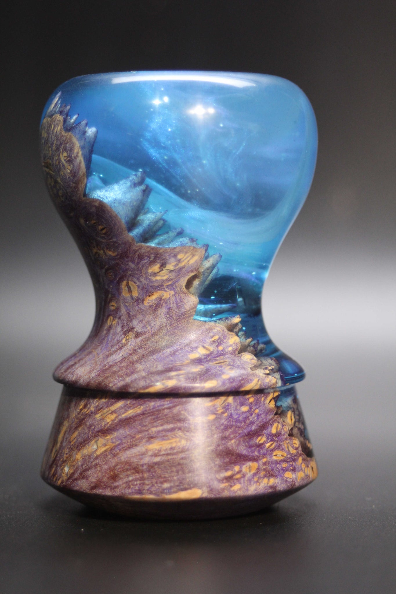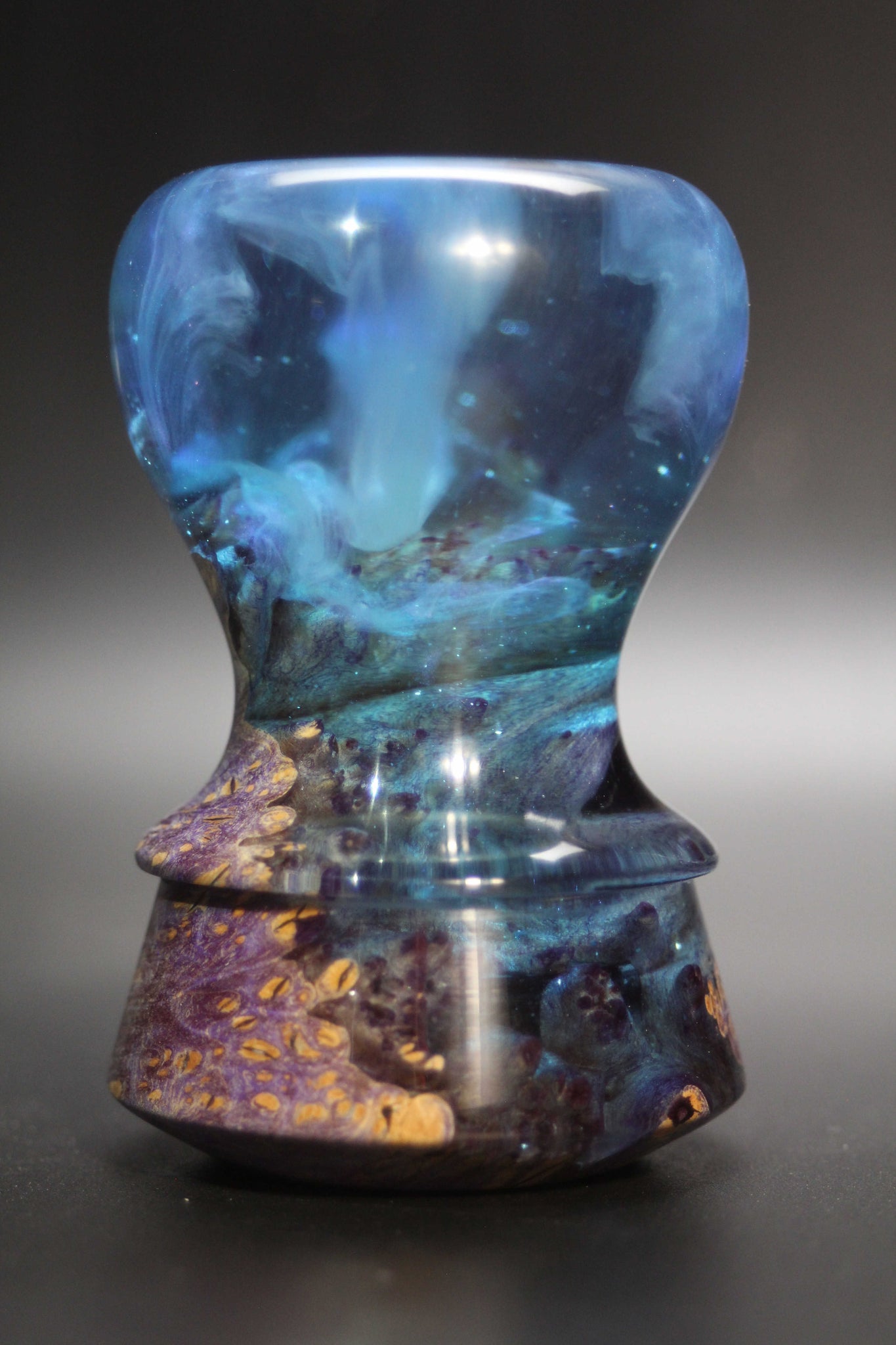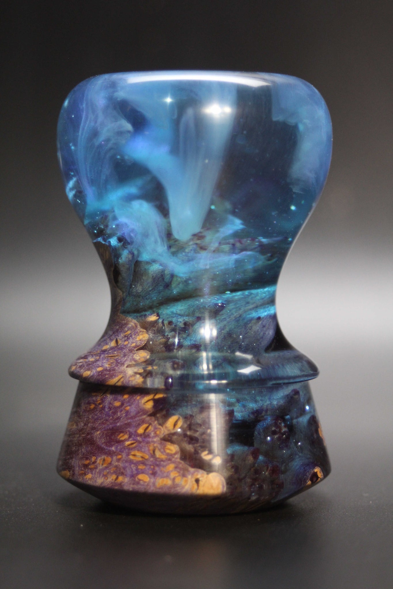 Artisan notes: I did all I could to insure the resin went all the way down to the knot hole base,,, outstanding in images or in hand.