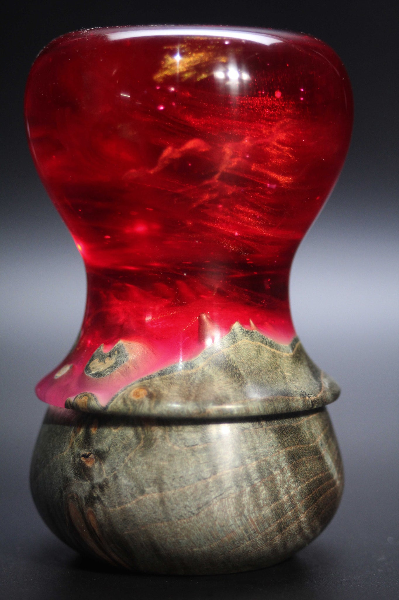 Artisan notes: A Driftwood colored wood with a deep red resin with gold clouds.